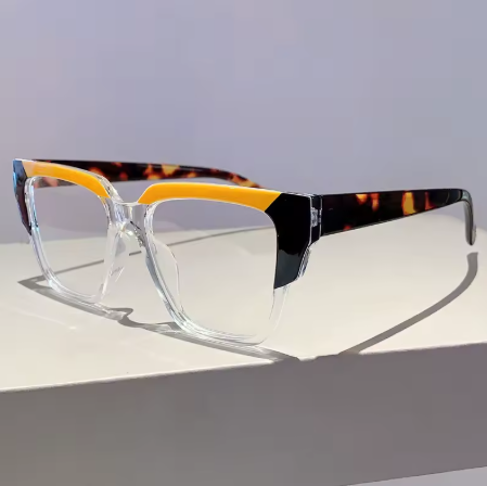 These stylish frames feature a clear crystal front with a striking black and tortoise accent and a subtle pop of yellow for a fresh, fashion-forward look. Designed to stand out while still being easy to wear, they’re perfect for everyday style or making a bold impression.