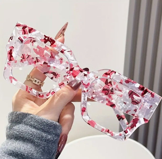 Rev up your style with Nadia! These red and clear abstract square glasses add a daring touch to your look. Stand out from the crowd and embrace your bold side. Elevate your style game with these unique glasses.